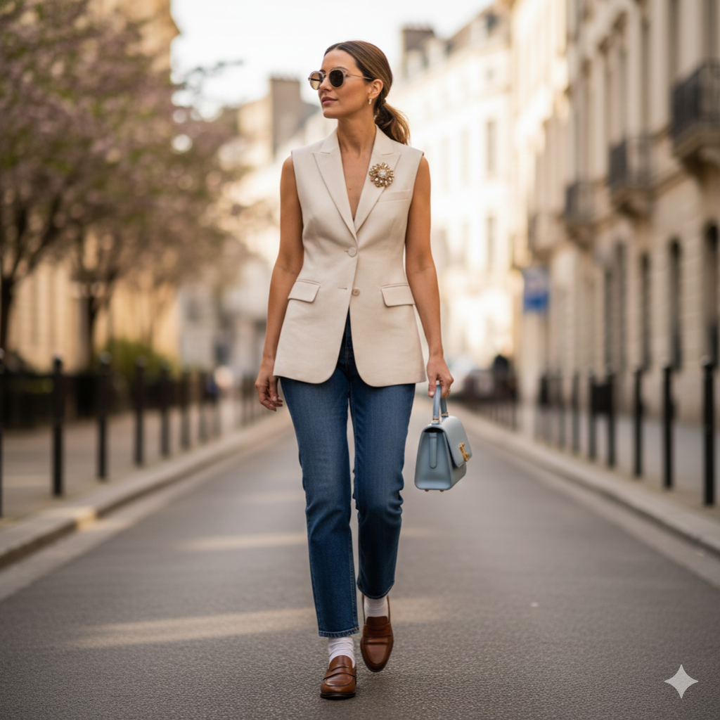 Souvenez-vous, le meilleur accessoire reste la confiance en soi, et la plus belle tendance est celle qui vous permet de vous sentir bien dans vos vêtements. Alors, osez mélanger le denim brut avec la délicatesse de la maille pointelle, structurez vos silhouettes avec un blazer sans manches, et surtout, amusez-vous à créer votre propre interprétation de ces essentiels !